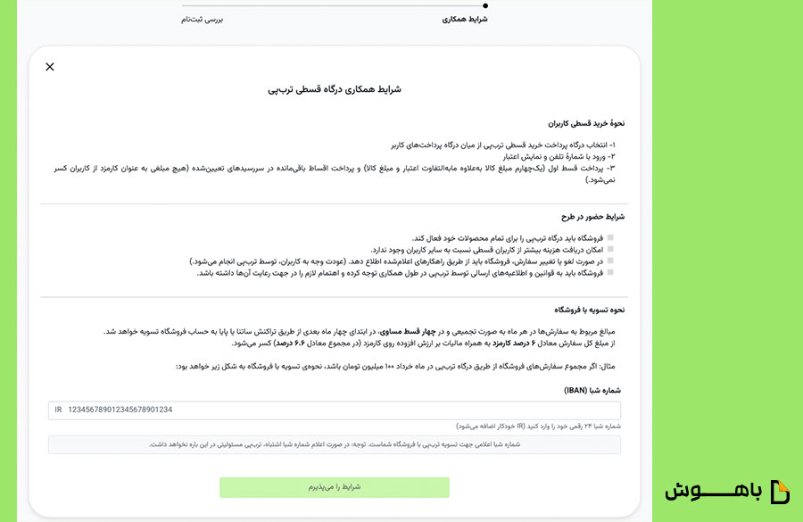 به آدرس https://panel.torob.com/s/torobpayRegisteration بروید و روی گزینه «فعالسازی درگاه قسطی تربپی» کلیک کنید.